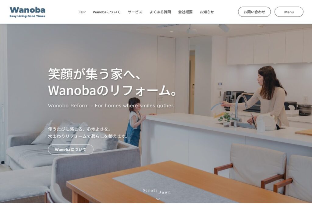 住まいのリフォームや設備工事、定期清掃など、地域の暮らしを支える【株式会社Wanoba】の公式サイト制作を担当しました。